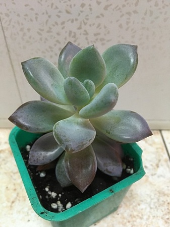 Echeveria glauca. При хорошем освещении по краям листьев вариегатность в виде белой карандашной обводки. 100 р. На первом фото - мама.