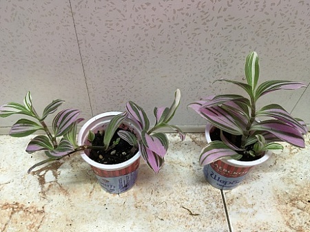 Традесканция альбифлора Нанук. Не вытягивается, листья с розовым. Стаканчики по 100 р.