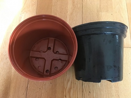 Горшки рассадочные большие. Б/у. 2 коричневых диаметром 18 см и 2 черных диаметром 17 см. На дне одного из коричневых есть трещина, на функциональности не сказывается. Все вместе 50 р.