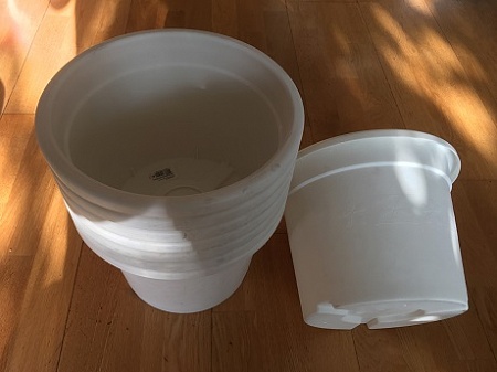 Кашпо Флора 27. Большие белые кашпо диаметром 27 см. На 8 литров. Пластик очень плотный. Новые, на некоторых внутри сохранились этикетки. Потертостей, трещин и тп нет, но от долгого хранения местами запылились. Всего 10 штук. По 150 р. По одному продавать не буду. В идеале самовывоз от метро Тропарево, могу привезти под Голову по предоплате.