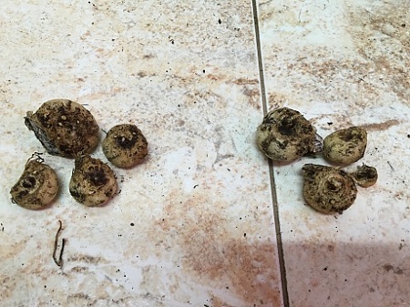 Калла клубневая фиолетовая. Есть 2 кучки клубнелуковиц по 100 р кучка. Левая кучка заказана.