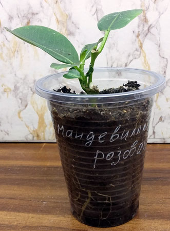 Мандевилла розовая (сорта не знаю) - укоренённый черенок 250 р. (отрастают молоденькие побеги).