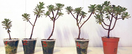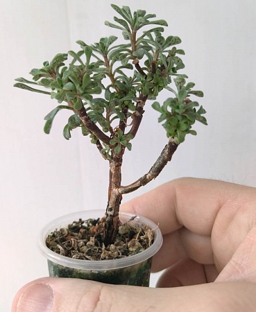 8. Растение, которое Норенко в свое время продавал, как эониум афф. мини, и которое и сейчас иногда предлагается здесь под этим названием. Но по всем признакам, это аихризон распростертый (Aichryson laxum), эндемик Канар. Предлагаю три черенка прошлогоднего укоренения. Фото старое, сейчас они уже заметно больше. Отлично чувствует себя в домашних условиях, растет волнами практически круглый год. Номера 1 и 2 по 300 р., номер 3 - 500 р., там уже полноценное деревце сформировалось бонсайного формата с красиво искривленным стволом (с этого ракурса не видно).