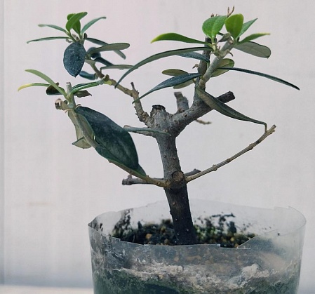 2. Оливка. Редкая карликовая форма, листья раза в полтора-два меньше обычных. Укоренение прошлого года. Желательно побыстрее пересадить в другой горшок. Цена 600 р.