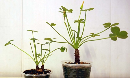 6. Кислица. Точное ботаническое название не знаю. Брал не на форуме, подарили в ботсаду. Сеянцы формируют подобие каудекса, но не уверен, что укорененный черенок его даст. Активно растет с весны до осени и цветет желтыми цветочками, на зиму скидывает листья и засыпает. Переносит обрезку, после которой начинает разветвляться. Левый стакан - сеянец, двухголовый от природы. Цена 300 р. Правый стакан - укорененная верхушка, цена 200 р.