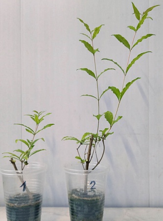 5. Гранат. Какой-то карликовый сорт, но не такой заторможенный, как та разновидность, что обычно распространяется. Этот растет быстро, прекрасно ветвится, а главное отличие - его ветки не хрупкие, как стандартного карликового граната, а гибкие. Соответственно, их можно формировать, заплетать и направлять, как душе заблагорассудится. При этом, цветет почти так же активно. Цена 400 р. за левый стакан (№1) и 500 р. за правый (№2).