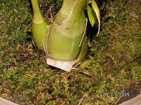 Да пересушка и залив в холод.15 это для нее уже холод проверено! Фото выложу позже чуть побольше подрастут эти загадочные почки.Кстати у вас как с листьями?у меня только после 3 поколения бульб исчезли пятна черные сухие,спасибо фитоспорину.А на счет мха у меня все в нем растет, не жалуется,и блоки им обматываю.Через год он сам расти начинает.Красиво получаетя ,как в лесу.