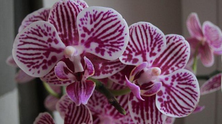 Добрый день! Хочу поделиться красотой, которая распустилась у меня на подоконнике! Конечно, это не уникальный цветок, всего-навсего фаленопсис, но у меня он единственный, и не устает меня радовать. Практически всегда он стоит в цвету, цветет не переставая. Но этой осенью просто аномалия какая-то: до подачи отопления в квартире была очень высокая влажность - 60%. И мой красавЕц подумал, наверное, что попал в родные края, чему сильно обрадовался и напускал 7 цветоносов!!! На сегодня он в полном роспуске, и я насчитала 25 цветков.