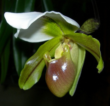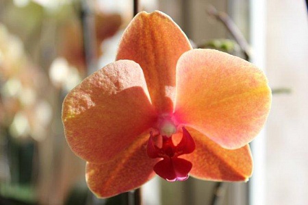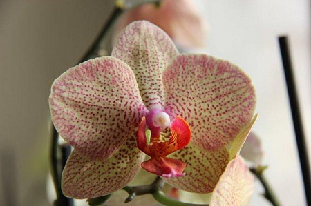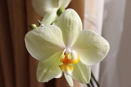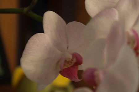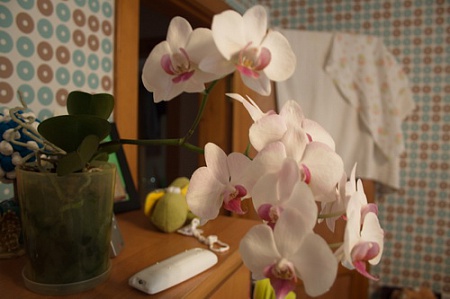 А єтот фаленопсис мне подарили нежно - сиреневым, но домашнее цветение (после 2 месяцев покоя) мне выдало беленький цветочек... С еле-еле сереневинькими вкраплениями...