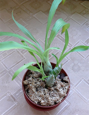 Нет, сама я крупная бульба - более взрослая, потом вдвое мельче, но цветшая и вот теперь моя. Не знаю, при делении, от старой большой могут сначала идти более мелкие росты? Хорошо, если так. Хуже, если растение, полученное с родины в европе, например, начало мельчать и "уходить". Вика, в своё время так жаловалась на перуанские мормодесы. Они исправно цвели, но мельчали раз от раза. Основание всё равно обследовала - всё в порядке:)