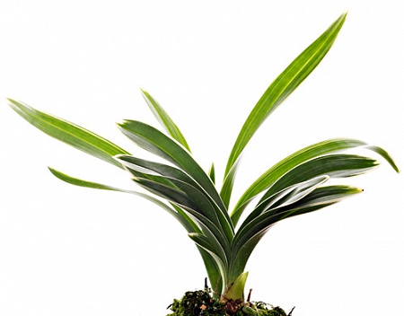 Английский у продавца на выставке был даже не вторым языком и не третьим, так что из всех объяснений удалось вынести, что это новый, им лично выведенный мини цимбидиум и что зацвести должен через год. Растень в высоту сантиметров 15-20. Меня разумеется сразила компактность, миниатюрность и вариегатность листьев. И при всем это цимбидиум?!Очень признательна за соображения буду.