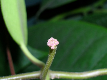 Я показывала в своем хвасте, который "не-геснериада" и в теме "идет весна, пора цветенья". Мы ее из Дании привезли, благодаря организационным талантам Инессы. Правда, по-моему, на нее мало кто тогда позарился:) А меня совершенно пленили листики. Они почти правильной округлой формы при хорошем освещении. Очень изящны. Имеют широкие плавные пятнышки (опять-таки, при хорошем освещении), в любом случае отличаются окраской несколько тонов. в результате, хойка смотрится почти как пестролистник. Единственно, что меня слегка огорчает, что цветоносы лезут только на плетях, вырвавшихся с кольца:(