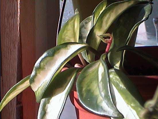 Увидела в магазине пестролистную хойю как раз такую как я давно хотела - желто-белая середина и зеленая кайма, а молодые листья с розовым оттенком. Но стоит она 550 р. четыре веточки на каркасе. Я бы конечно купила не задумываясь, будь они все пестролистными. А они в самом начале все пестролистные, а потом три из четырех веточек обросли крупными темно зелеными листьями. Продавец сказала, что это от того что она стоит в темном месте, только я сомневаюсь, т.к. один черенок все таки с ярко выраженной пестролистностью. Вот я и думаю, не происходит ли с хойями то же самое , что с филодендроном и традесканцией, которые иногда просто перерождаются из пестролистных в обычные, и эти побеги надо обрезать, т.к. они более сильные и будут подавлять пестролистные?