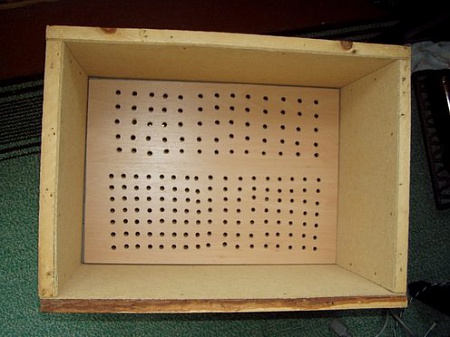 Решение: Основой послужил деревянный ящик из натуральных брусков и двп, сколоченный где-то в Челябинске, для перевозки в Воронеж датчиков давления. Внутренние размеры - 50см х 36см х 36см. На дне на керамических держателях (раньше они держали спирали в каком-то бытовом обогревателе) установлены нагреватели - проволочные резисторы, подключенные в две группы, отдающие 20Вт и 40Вт при напряжении питания 220В. Рамка, на которую опирается пол, изготовленая из пластиковых П-образных обрезков от подоконника, прикручена к стенкам ящика саморезами с головкой-прессшайбой. Пол, изготовленный из двух обрезков паркетной доски, сцепленных "в замок", находится на высоте 10см от дна ящика. Для теплопередачи в полу просверлены сквозные отверстия. На крышке ящика, оклеенной алюминиевой фольгой "для запекания", установлены две люминесцентные лампы по 11Вт. Освещение управляется механическим суточным таймером FERON (точность уставки - 15мин). На боковой стенке ящика установлены два тумблера, включающие раздельно нагреватели на 20Вт и 40Вт (60Вт - совместно). Термостат - самодельный цифровой, точность измерения одна десятая градуса. Алгоритм работы - гистерезисный: нагрев включается, если температура ниже нижнего предела, выключается, если температура выше верхнего предела. На данный момент уставки - 10.0С и 10.5С. Красный светодиод - индикатор нагрева, управление (просмотр пределов и их установка) - одной кнопкой. Корпус термостата - корпус старого компьютерного блока питания.