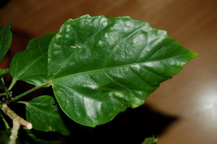 Здравствуйте! Я цветовод совсем начинающий. И хотя отдельные экземпляры цветов растут у меня больше десяти лет (например, кактус), только в этом году я стала следить за тем, как они растут и чего им нужно (раньше просто полив считала подвигом на ниве цветоводства). Этот гибискус (фото прилагается) живет у меня 2,5 года. Цветет красным. Еще два месяца назад он, настойчиво цепляясь за жизнь, влачил существование в тесном горшке, в старой земле, без подкормки. Листья у него желтели и опадали. Два месяца назад я за него взялась и пересадила в хорошую землю. Он выпустил кучу веточек-листочков. И вот на что я обратила внимание: некоторые (не все, может, процентов 10) его листочки выглядят так, как будто их кто-то ел. Но если его едят, то этот кто-то мгновенно убегает - не нашла ни одного насекомого, ни паутинки, ни... ну вообще ничего. Листики на вид чистенькие. Другие листики (их процентов 5) выросли мутантиками. Цветок давно не цвел (плохо ему было в старом горшке, плюс, я, борясь с его ростом, Общипывала верхушки). Но после пересадки выпустил один бутон. Пока его не удобряла, но собираюсь удобрять Forte для цветущих растений. Поливаю, стоит в солнечном месте, но без прямых лучей. Опрыскиваю водой каждый день по утрам. Когда пересаживала его, на корнях ничего криминального не заметила. Большую часть его жизни у меня дома я не обращала особого внимания на эти листики, поэтому не помню точно, были ли они у него всегда, или появились недавно. Почему-то мне кажется, что всегда были. Но сейчас гибискус растет на балконе по соседству с монстерой, драценой и т.д. И не хочется, чтобы все растения разболелись. Муж говорит, что гибискус-мама моего гибискуса, страдает теми же отклонениями. Он считает недостатки врожденными и неизлечимыми. Он прав? Спасибо! Вот лист-мутант: изогнутый сам по себе, с мелкими выпуклостями и впуклостями.