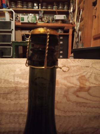 Все это размешивается и разливается по бутылкам (у меня нашлись бутылки 0,8 л. из под игристого вина белого (прозрачного) цвета - получилось красиво). В каждую бутылку кладется 3 изюминки, бутылки закупориваются (у меня всегда имеются в наличии пробки от винных бутылок - подбираю подходящую, что бы вошла максимально плотно) и теперь еще не выбрасываю железочки в бутылок от шампанского - их надеваю сверху и плотно (плоскогубцами) закручиваю проволочку.
