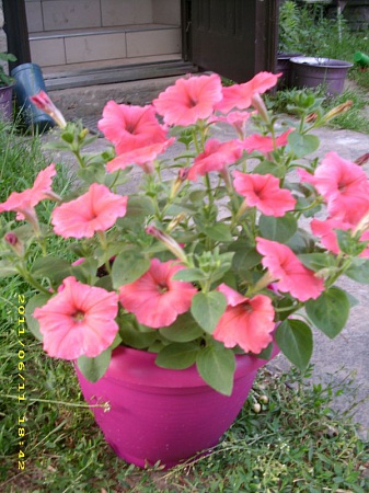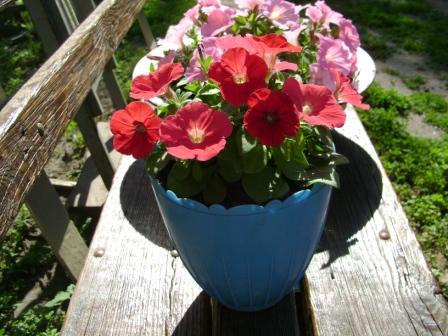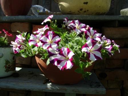 На счет черенков-я уже дошла до того,что сеять петунии не хочу. Выискиваю необычные сорта и прошу разрешения оторвать веточку.Причем ищу последнее время только махровые.что-то у меня к ним в последнее время любовь проявилась. Потом его в таблетку и кулек на голову. Девочки,несмотря на уже дето и на жару все прекрасно укореняется.Так я уже наукореняла много всяких Присцилл и махровых сурфиний.Насадила их в большие горшки по 5-6 штук.Уже начинают свешиваться по краям и бутоны появились.Так же уже размножила и Пикассо-из одной несчастной сделала 5. Вообще мне понравилось такое размножение,благо зимой маточники хранить есть где. Хочу в конце лета почеренковать и любимые сорта типа Розовое Утро.Вот только Опер взять негде,нигде подходящего куста не вижу...
