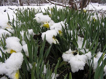 Инна из Казани пишет: ну хоть быстро растаяло это красивое снежное безобразие?! Нарциссики, наверное, примяло, но живые..Они, вроде, стойкие товарищи к таким погодным выкрутасам |