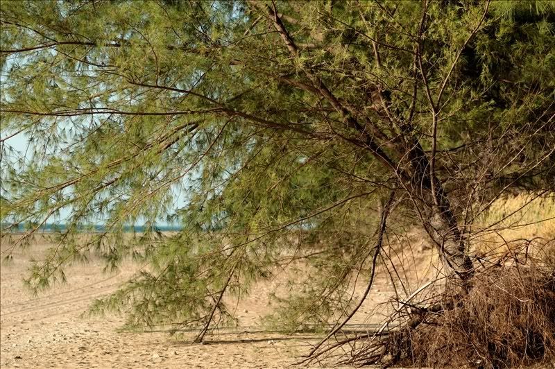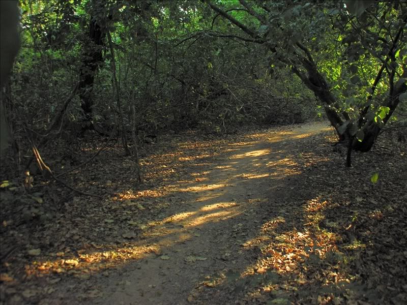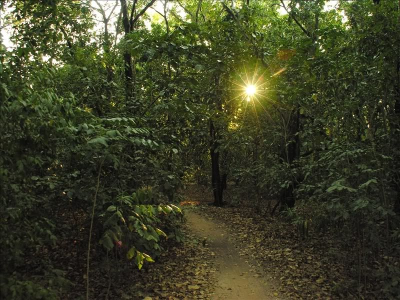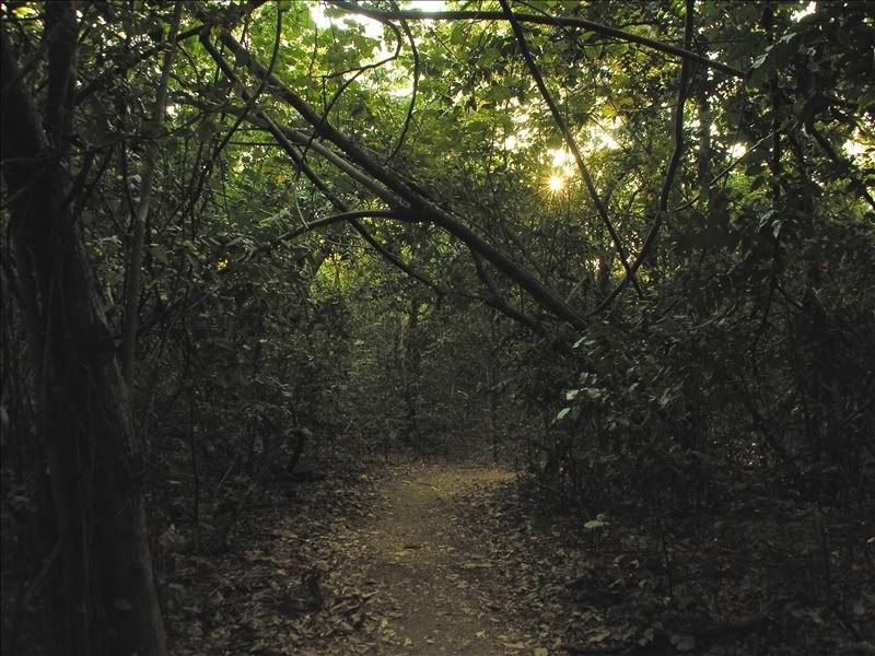 Тропинка из леса выходит прямо к пляжу, а там как раз закат и солнце на песке...