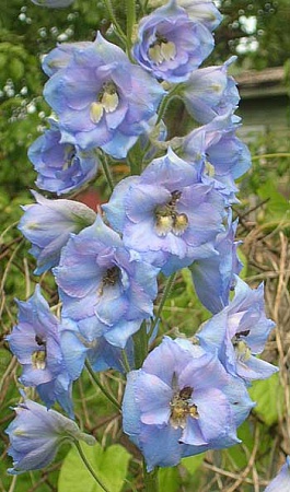 Любовь Гредель,по-моему, это элатум-гибрид. Это растения высотой 120–170 см с плотными пирамидальной формы соцветиями - кистями длиной 40–70 см. Цветки крупные, до 8 см в диаметре, чаще всего полумахровые. Окраски — бледно- и ярко-голубая, синяя, темно-синяя, розовая, бледно- и ярко-сиреневая, а также белая, часто с ярким, контрастным глазком. Без деления на одном месте хорошо цветут обычно 3–4 года. Размножают сорта этой группы прикорневыми зелеными черенками ранней весной и делением куста весной или в конце лета.