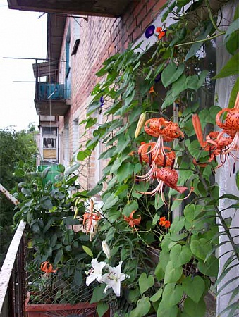 У меня открытый балкон (Владивосток), южная сторона, 4 этаж, перед окнами никаких деревьев, солнце жарит (если дождя нет) будь здоров, летом с 11 дня до 18вечера в среднем 30-35 (опять таки если нет дождя, при дожде меньше). Уже не первый год сажаем с женой садовые растения, хорошо живут лилии, георгины, про вьюны-ипомеи, петунии, бархатцы даже говорить не хочу, пытались вывести - не тут-то было.Сейчас мы сдались и они оплетают весь балкон.Вот уж точно - эту песню не придушишь, не убьешь. Корейские хризантемы (горшечные) держим до самых холодов на открытом балконе, потом в комнату , там продолжают цвести аж до января.Все луковичные зимуют в почве на балконе, укутываем контейнеры от морозов. Пока (тьфу-тьфу...) никто не помер. Еще гладиолусы забыл. Не говорю о наструрции, тоже не выводимое растение ;)Жаль, что балкон обычный - маленький 3м. Росла плетущаяся роза, но в этом году слезно ее выпросила приятельница, на дачу. На следующий год буду сажать шток-розы. Так что было бы желание, можно многое растить на обычном балконе.На фото кусочек балкона.