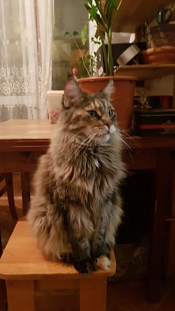 Приветствую. У меня тоже есть куначка, она же Белка, Коша, Конь )) Удивительное создание. До этого я занималась корнишами,то просто кошки, а мейны другие-своенравные и преданные. Шерсть есть, но не море как тут кто-то писал. Обычно собирается в местах постоянных лежек, по полу не катается. Причем длинную шерсть собирать проще с мебели, чем короткую остевую(как у всяких бритов и иже с ними). Отличаются мэйн-куны молчаливостью. дада, наша кошка даже во-время течки ведет себя весьма тихо по кошачьим меркам, концерты по ночам как ориенталы не устраивает. [IMG WIDTH=640 HEIGHT=480][/IMG]