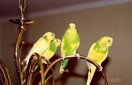 Такая мафия на люстре сидит! класс! У меня похожие были в свое время - ощущала себя реальо в Австралии - по комнате мотались 8 птиц: 2 родителя и 6 детей!)))))))))))