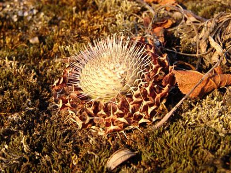 На камне держится прочно, несмотря на угрожающий вид оно неколючее.