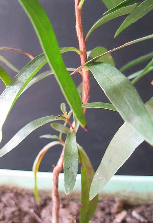 очень, очень любит полив (если затянешь с поливом и пересохнет почва, листья сохнут и становятся как сено, ломаются и рассыпаются); листик, если потереть пахнет лекарством (очень запах похож на растирки от кашля), лист жесткий, ломается с треском;