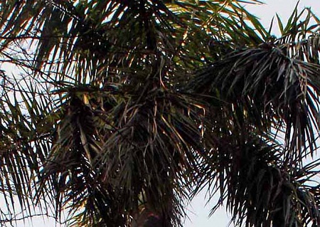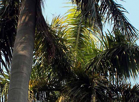 Archontophenix alexandrae, судя по высокому росту, выпуклому основанию гладкого ствола, "кольцам" от опавших листьев и коротким черешкам перистых листьев. Но пальм 3000 видов, для точного определения такие фотографии непригодны. На них не видно, какой черешок у листа по форме, есть ли на нем шипы, какие особенности у листовых пластинок.
