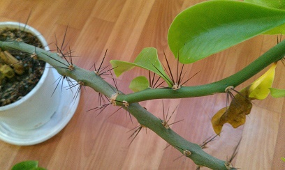 Прошу помощи в опознании какой-то колючки. Растет уже несколько лет у нас в офисе. В этом году зацвело, получились плоды.