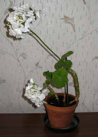 Если сразу все листики позасыхали, то либо неправильный уход, либо сильно жарко на окне. ТЕперь ничего не сделаете с листиками, попробуйте отрегулировать полив и проверьте корни (не гниют?). Герани поливают обильно и часто только на прямом солнце в жару и если они за день выпивают всю воду и грунт становится сильно сухим. Если перед следующим поливом грунт сильно влажный, то поливать не надо, пока верх не станет почти сухим. (пальцем надо вглубь горшка ковырять перед поливом, а то сверху может быть сухая корка, а внутри болото). Лучше поставить горшочек в белое кашпо, так как в коричневых горшках корни сильно греются, тем более горшочек маленький. Сейчас пусть цветет, а весной обрежете, наростут новые листики, будет пушистик. Если сейчас прищепнете или порежете, то цвести не будет, пока новые побеги не отрастут. Я думаю, что дело в жаре. У меня часть в таком же виде, как у Вас, несколько геранек, один раз сильно засушила, а стоят на солнце за стеклом. И еще от сорта зависит. У меня Магда все листья поотсушивала на солнцепеке, а Пинк Айсу хоть бы хны. Цветет себе (ТТТ) и весь зелененький.