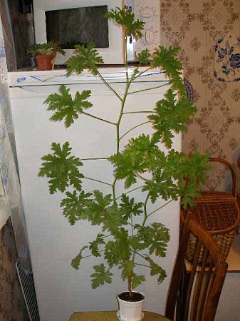 это душисая герань! Хорошо сформированный кустик. Достаточно света и он даже процвел!