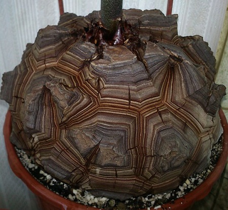 Не очень уверена в этом. Часто встречаю фотографии в плоских горшках (очень плоских). На фото из интернета - DIOSCOREA ELEPHANTIPES горшок диаметром 99см, высота растения с ботвой - ок.200см (горшок стоит один на европоддоне!). Видимо, растень выставлена на продажу .