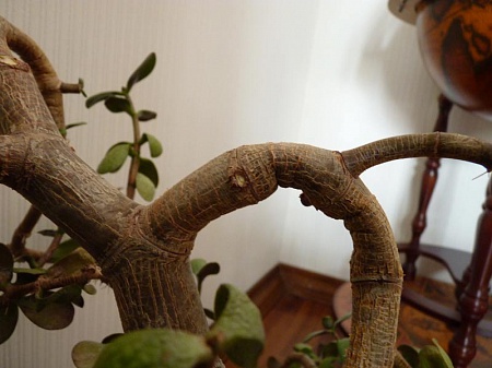 Толстянка просто гибнет. Стволы стали мягкими. Листочки еще желтее и суше