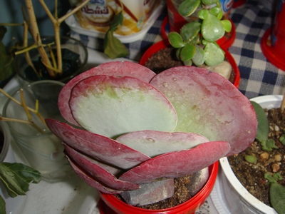 Одно из них- Cotyledon undulata , котиледон волнистый. В горшке три растения, приблизительно по 10-15 см.