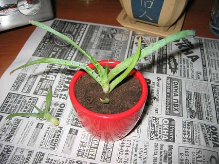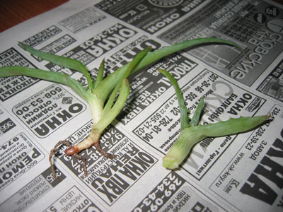 Крупного товарища не надо мучать, подсушить часок и посадить в горшек. Можно денек не поливать для надежности, а потом полить нормально, если в комнате, конечно, тепло. Его сушить нет смысла, корни отсохнут, придется новые наращивать.