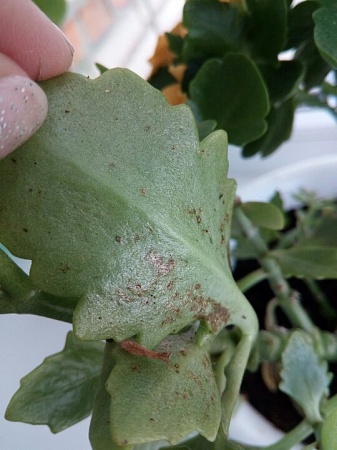 Добрый день. хотелось бы узнать у вас вот что. сегодня я заметила у себя на листочках вот такое как на фото. до этого их не было а сегодня появились и это на всех цветах. кто знает что это и как то этого избавиться ???