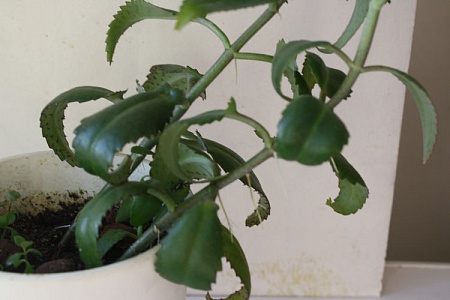 Кстати похожим образом ведет себя и другой каланхоэ, кажется Блоссфельда, выращенный из черенка. Только у этого подкручиваются нижние листочки.