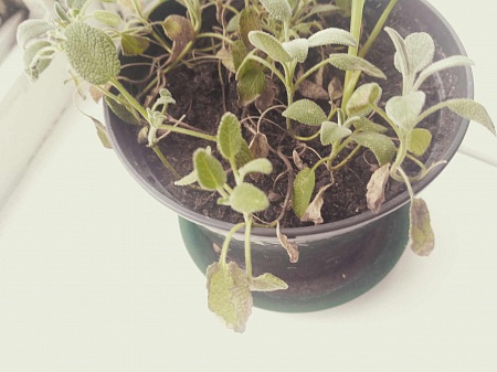 Из раза в раз примерно одинаково умирают пряные травки: базилик, шалфей, мята.. Начинают засыхать с нижних листочков. Какое-то время продолжают ещё расти, появляются новые побеги, но в конечном итоге засыхают полностью (( При появлении сухих листочков начинаю поливать чаще, но лучше не становится.