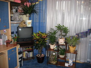 Вот в том-то и дело, что я боюсь их сейчас химией травить. Рассказываю про каждое растение. У меня в комнате их всего 6. Сначала я купила Фикус Бенджамина. Это было чуть больше месяца назад. Поставила его сразу в постоянное место, осветленное, рядом с окном (южная сторона), но прямые лучи не попадают, потому что висит тюль. Я сейчас покажу, как все растения расположены на фото. Фикус сначала депрессовал, листики скидывал, опрыскала эпином. Перестал сбрасывать, через две недели перевалила - и всё - листопад ужасный, снизу почти все листья сбросил (думаю, что перелила начиталась, что после пересадки обильно надо полить, и не учла, что фикусы этого не жалуют). Потом купила Драцену (не знаю к сожалению сорт)и спатифилум, так они втроем у меня куковали и соседствовали. А в прошлые выходные поехала в Садовод и купила еще два цветка: Кротон и Драцену с желтыми краешками. По незнанию, блин, сразу их все вместе поставила Раньше никогда цветами не занималась, а потом ТАКАЯ любовь к ним проснулась, и вот наконец купила сразу много! Все растения я перевалила в новые горшки через какое-то время после покупки. Последние два - сразу после покупки. У меня единственное с чем проблема - слабость с поливом мне кажется, все руки чешутся полить... Хотя Кротон это любит вроде. Опрыскиваю листики всем раз в день, но когда солца нет. Драцену и Кротон я купила уже с дырочкой на листике и пятнышком, и на фикусе тоже был этот налет на некоторых листах - по вижу напоминает засохшие дрожжи. Вчера оторвала с фикуса один больной листик и рассмотрела что-то очень малюсенькое и беленькое, как крапинка бегает. Лупа не очень сильно увеличивает, видела только движущуюся точку беленькую, вроде кругленькая. Соответственно крылышки я там не видела, и скорее всего не казявки, потому что коротенькая .) На других растюшках не видела ничего, только на фикусе... Но у него на листиках целый сбор... там и дырочки, что на фотке, и какие-то засохшие дрожжи, и что-то черненькое очень липкое на некоторых листиках. Я боюсь, они у меня ослабленные, не очень ко мне привыкли... как их фимией-то?