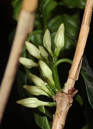 Какая красота! А фактором цветения кроме возраста растения наверно является только яркий свет?, у меня стоит рядом с подоконником и не цветет. А на что похож аромат кофе, мареновые мне кажется созвучны немножко. У Рандии сиаменсис что-то есть от Гардении.