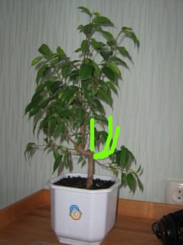 Здравствуйте всем!Растет у меня фикус,совсем не ухоженный еще и не правильной формы.Так хочется иметь красивое деревце,а как правильно сформировать его не знаю.Помогите сотворить из него красавца!