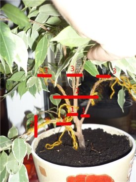 Формирование фикусов, обрезка, сращивание, переплетение, штамб