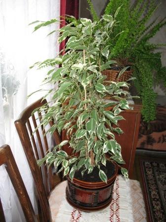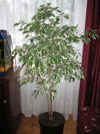 Я у своего бенджамина по мере роста обрезала нижние ветки, просто потому, что основная густая масса веток оказывалась ввержу и это нужно было сделать чисто для улучшения внешнего вида. Так и получилось деревце. А вот переплетать стволики я не смогла, очень жалко было мучать растение! Хотя красиво, конечно, если все сделано профессионально. На фото какой он был и каким стал.
