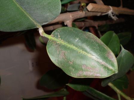 Здравствуйте, У меня тоже проблема с каучконосным фикусом. На вид листья выглядят так, как будто их облили кислотой. Куст большой, но уже практически весь покрылся пятнами. Никаких вредителей не наблюдается, да и во время ремонта квартиры рядом с ним стоял фикус Бенджамина, с ним ничего не случилось абсолютно. В чем дело не пойму.