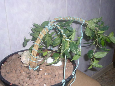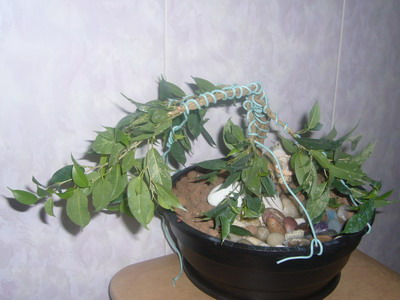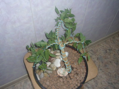 А пока пытаюсь сделать нечто бонсаиобразное из Ирэн, только т.к. стволы у этого растения не очень толстые (нашла в описании, да и сколько искала дерева с толстым стволом в реале ли в интернете ли - просто посмотреть - не нарла). В общем решила срастить несколько стволов