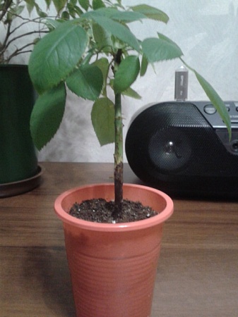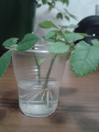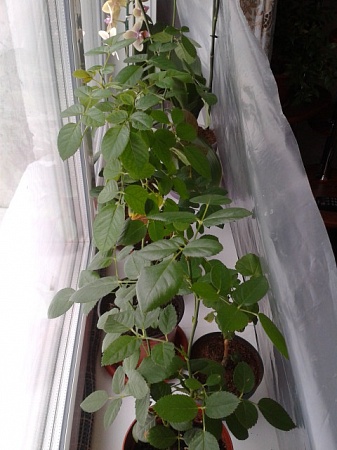 Вот этот черенок от садовой розы стал чернеть, как только включили отопление, за пленкой пока держится.