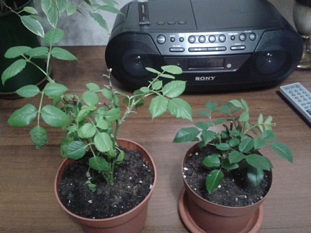 Вот эти две розочки я купила в начале ноября, видимо, гибнущие розы рассадили и продавали совсем дешево, я купила, пересадила и после карантина поставила за экран, теперь уже видно, что маленькая роза совсем прижилась, большая еще болеет, но выглядит уже лучше, надо ли говорить, что на подоконнике без экрана, при сухом воздухе они уже давно бы погибли.
