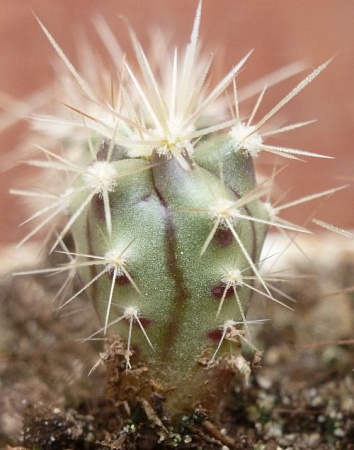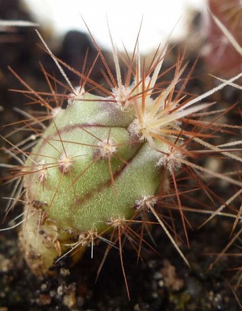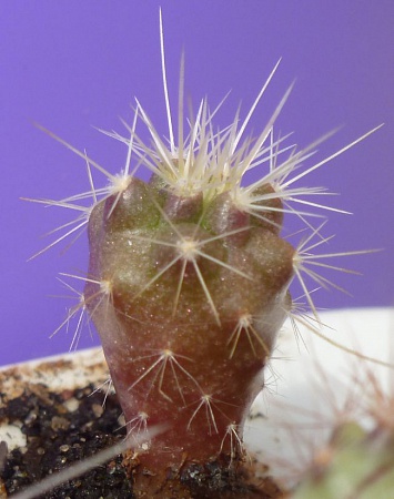 Один кактусёнок задал мне загадку. Вроде бы он здоров, нормально развивается, ему почти 6 месяцев... Но... что за странное "украшение" из красных пятен у него на стебле?